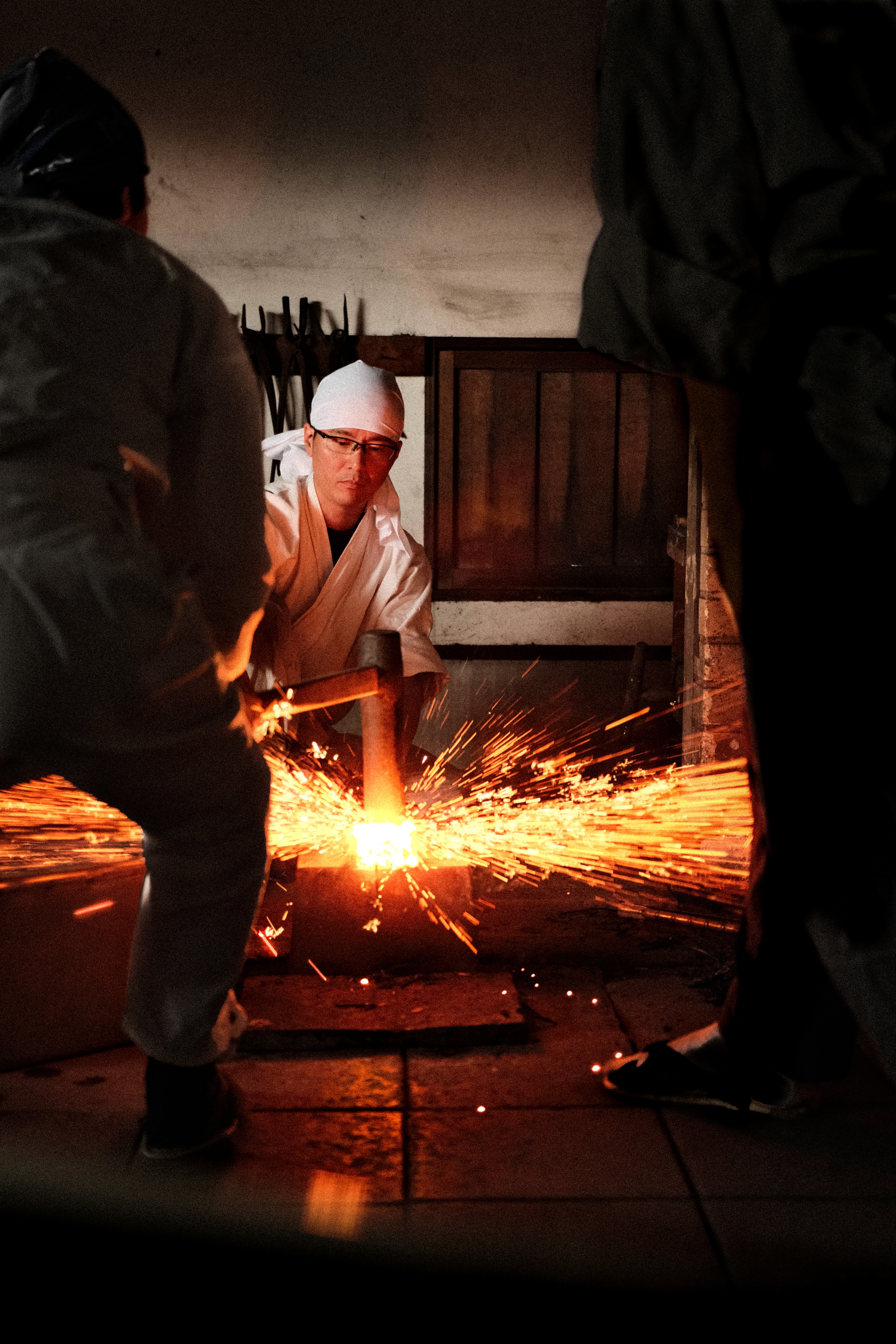 The rhythmic clinking of the hammering and sparks flying is really a scene to behold.
